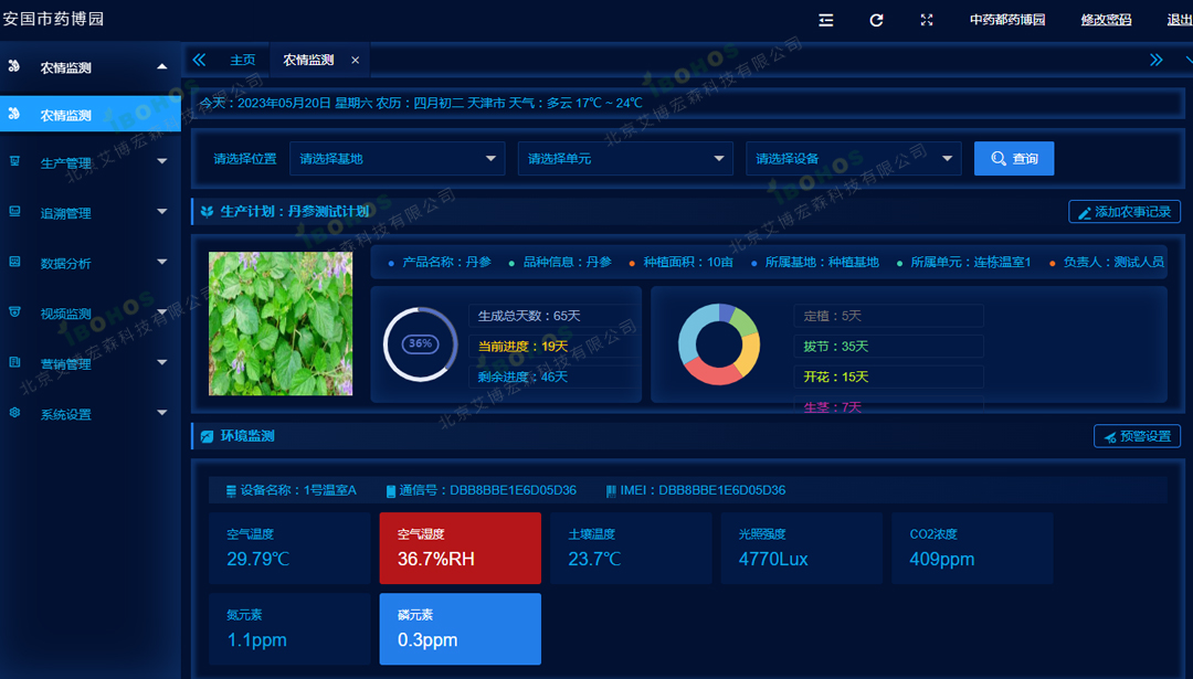 大田四情监测预警针对大田种植过程中的生长过程(苗情)、病虫害发生(虫情)、节约用水(墒情)以及利用大数据分析可能发生的自然灾害(灾情)通过长期监测进行实时预警,保障种植过程中提升品质,降低损失,优化种植技术。